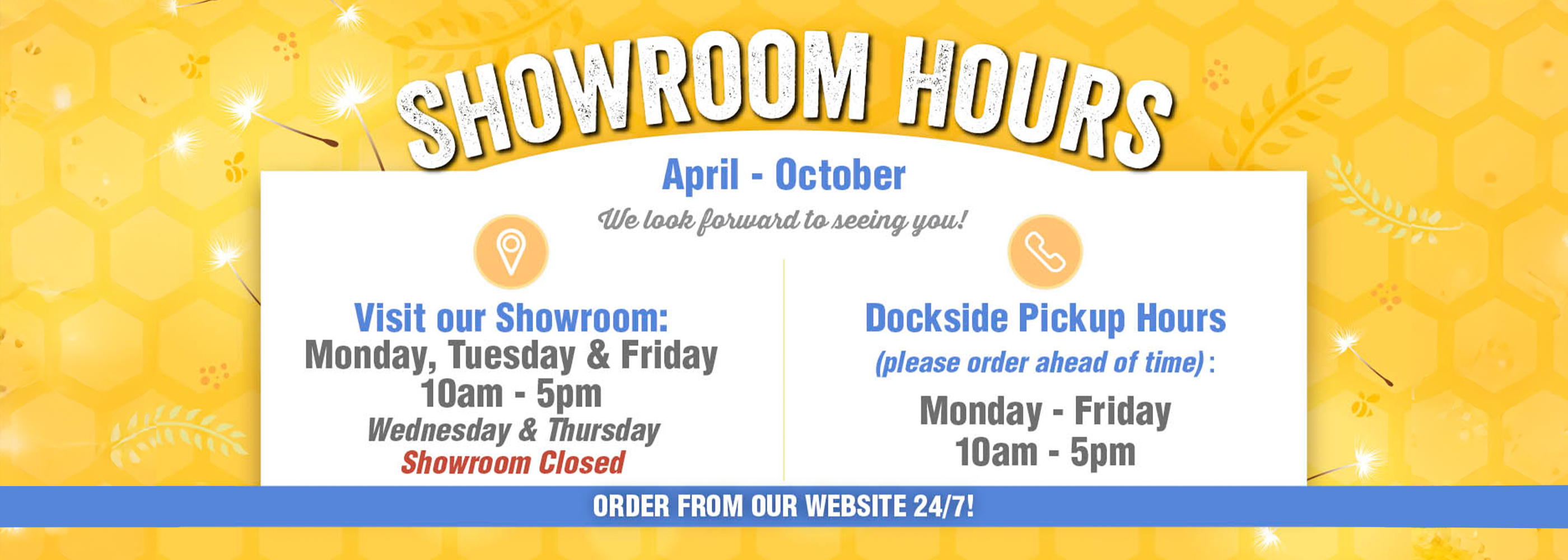Dockside Pickup Hours (order ahead of time please)