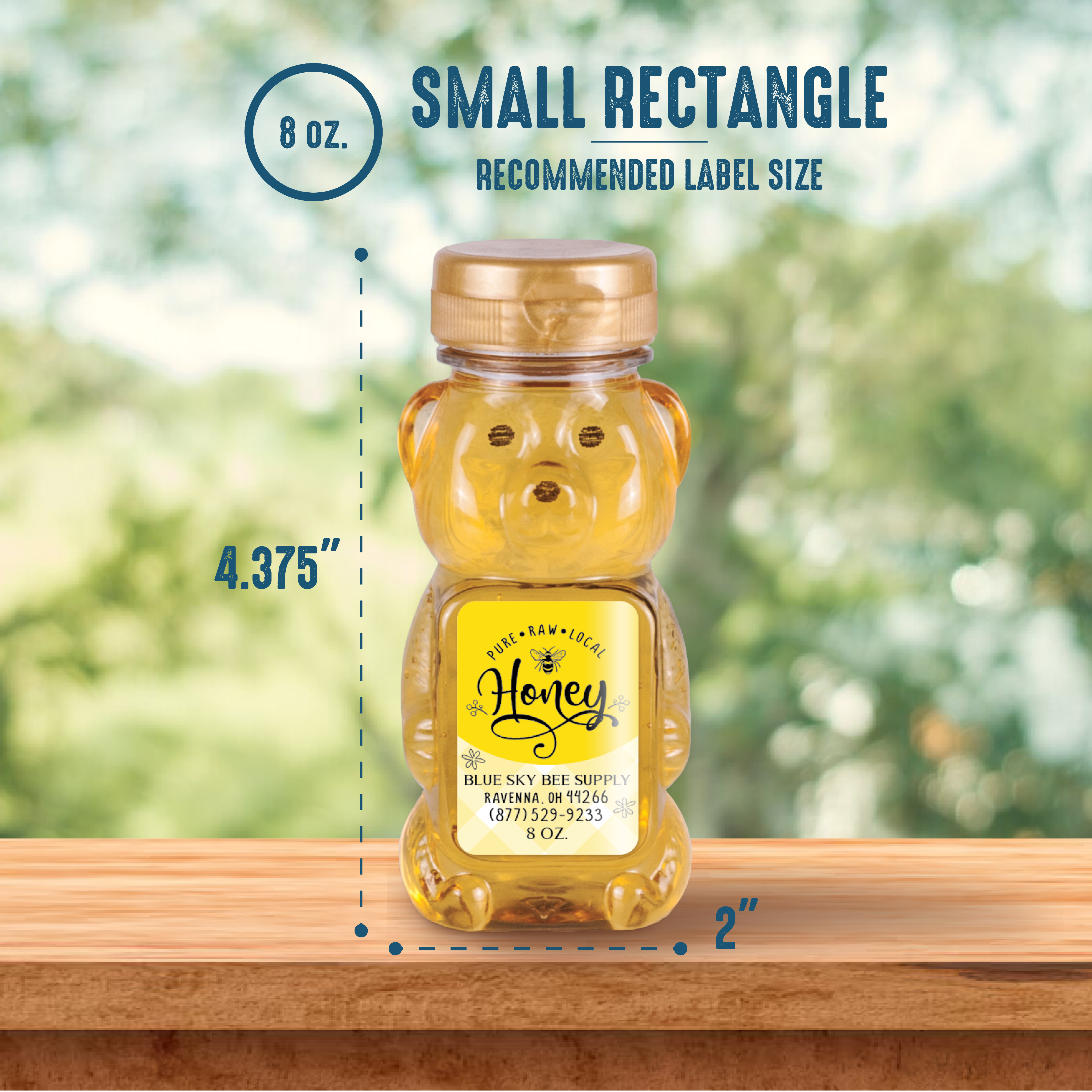Our recommended label size for this container: Small Rectangle