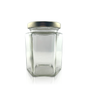 A beautifully clear 9 fluid oz hex jar with six even panels (1.5" tall by 2.75" wide), offering excellent label placement, style, and practicality.