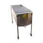 The solution for uncapping and frame storage. Uncap directly into the removable cappings basket, remove capping spike when finished, and cover with lid. Let your cappings sit and drip dry in the sloped drain tray. This tank will hold 22 frames with the basket in place, or 33 frames without the basket. 100% USA stainless steel.
