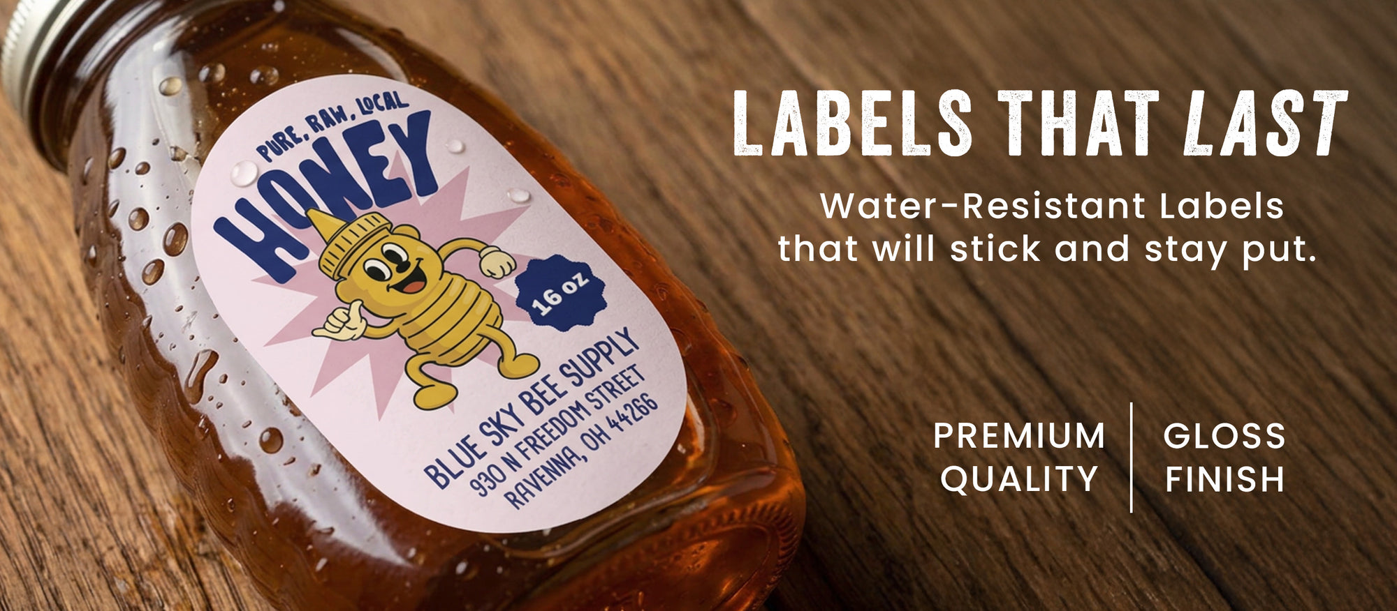 These labels are printed on WHITE water resistant stock only.